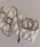 ساعت جواهری بند مارشالی فری سایز صفحه سفید طرح گل